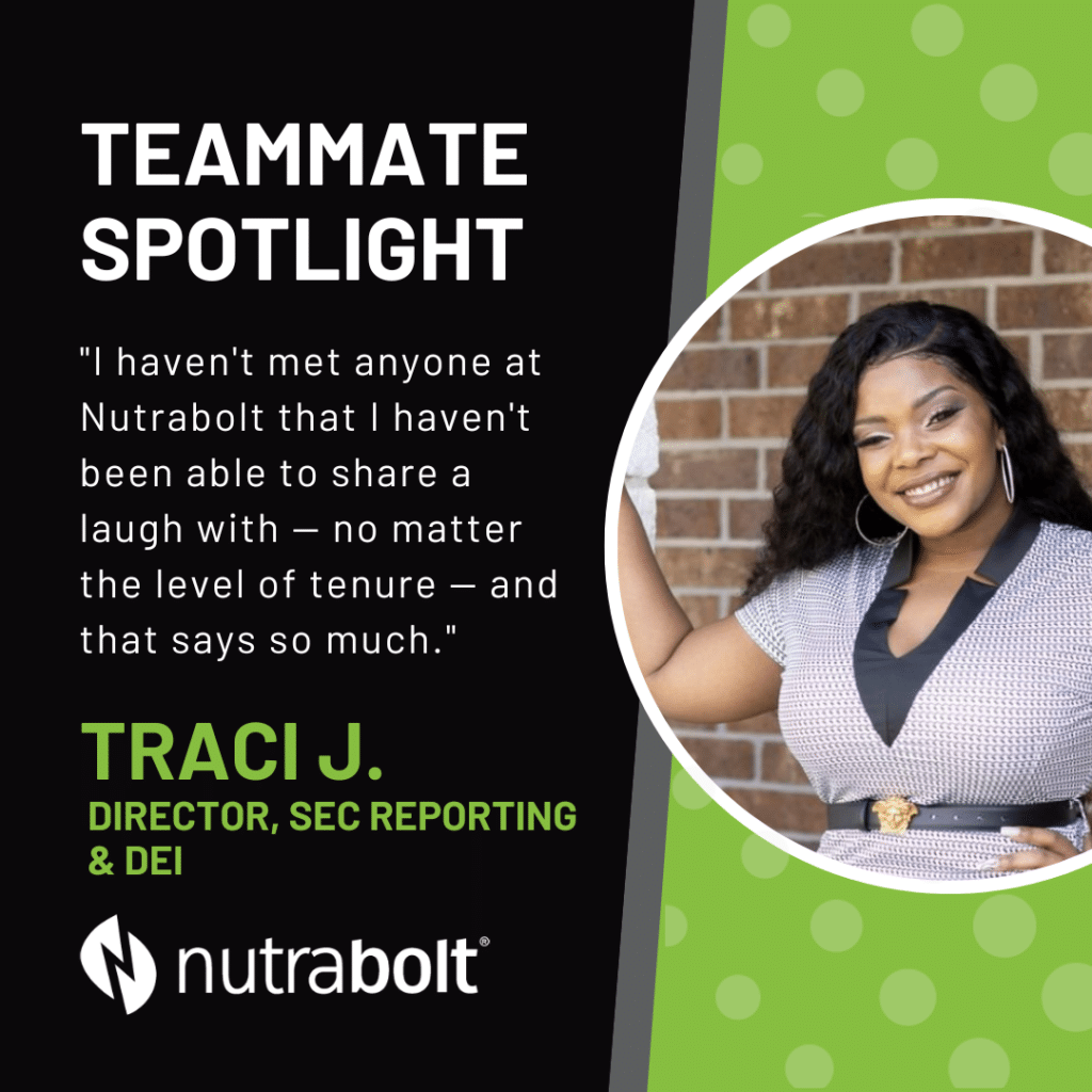 Meet two members of Nutrabolt’s People team — Traci J. and Kelsey K.! Traci is Director, SEC Reporting and DEI, and Kelsey is Director, Social Impact and Engagement at Nutrabolt.